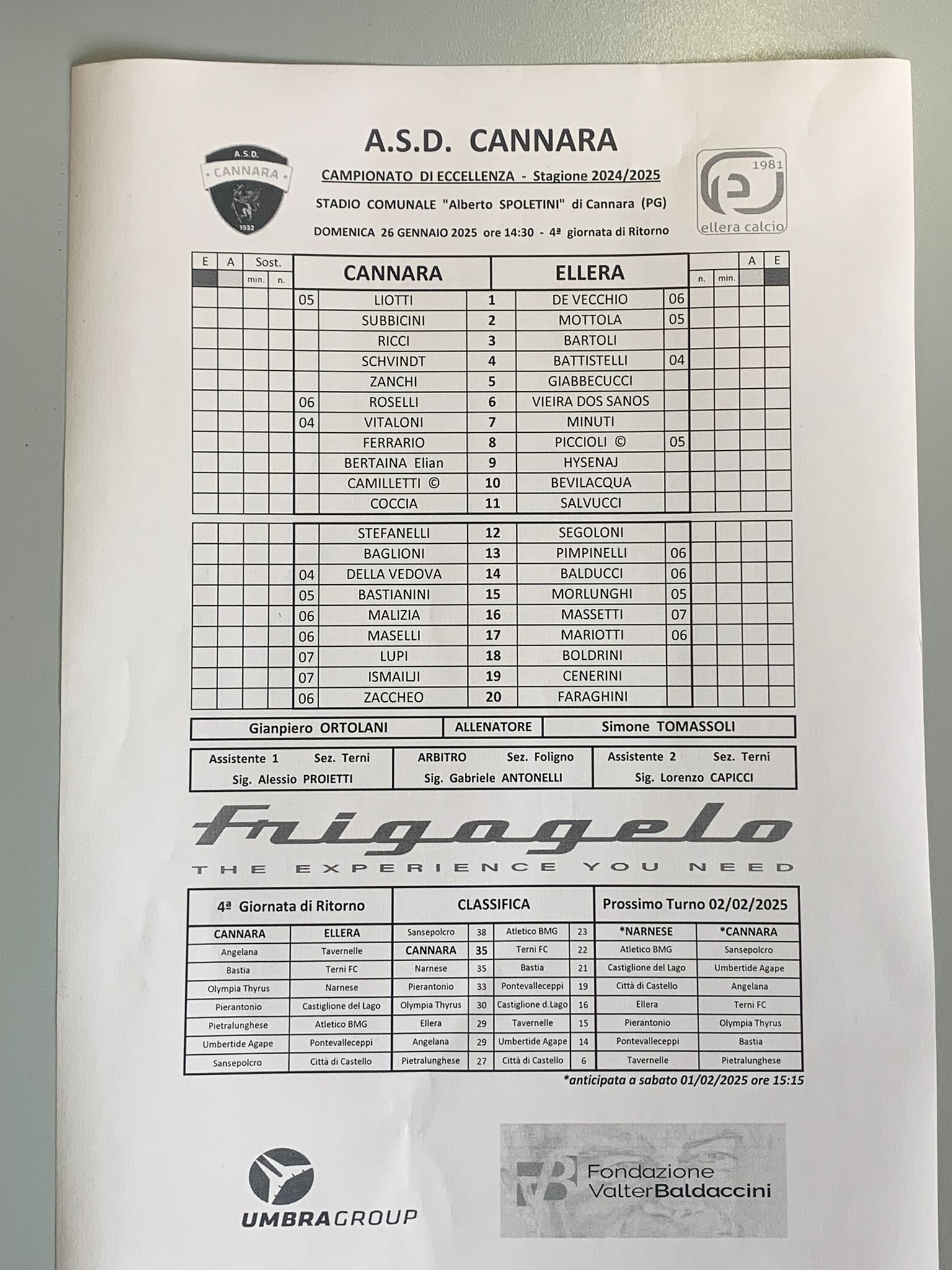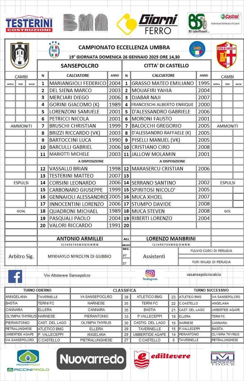 ECCELLENZA - Tutti i gol e le liste gara della 19a giornata