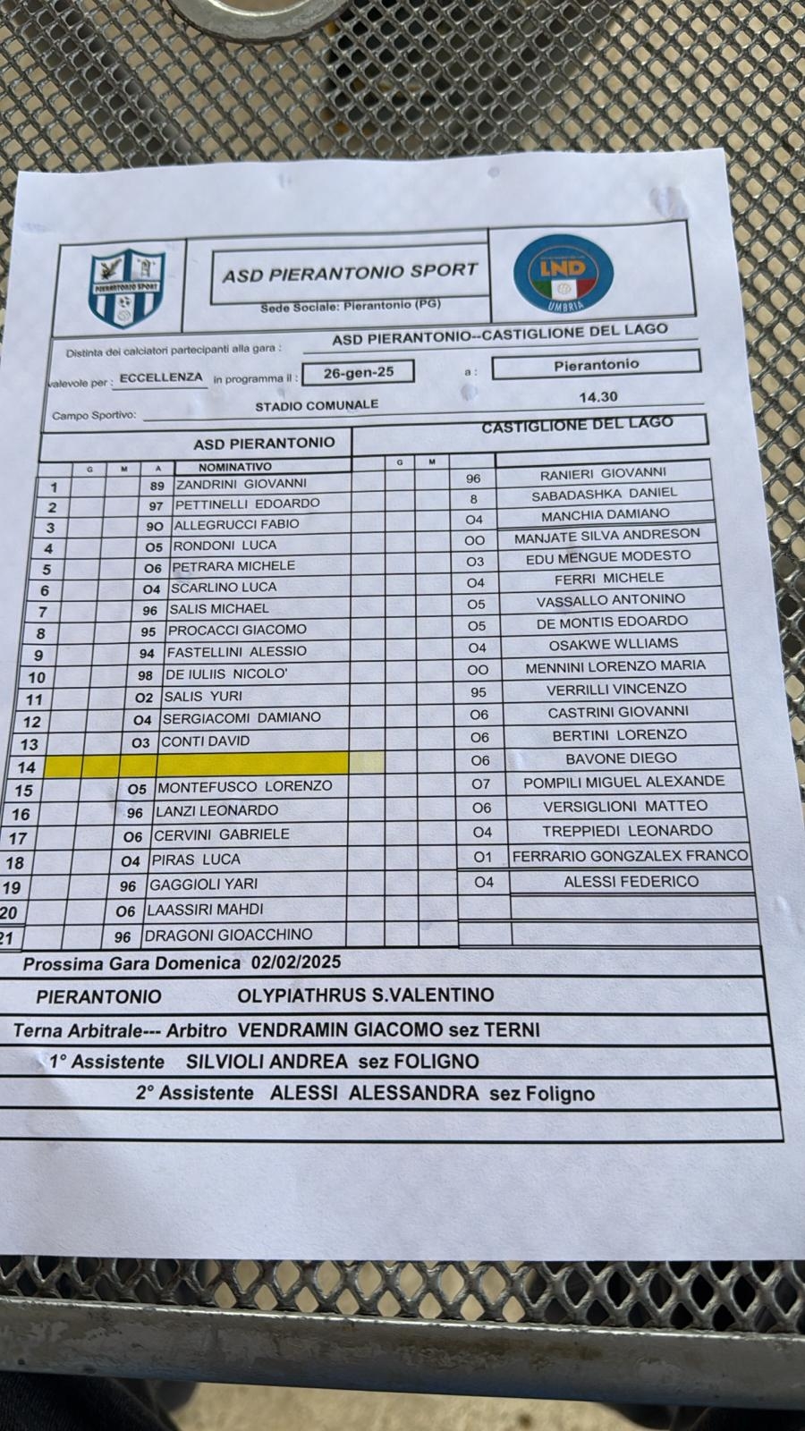 PIERANTONIO - CAST. LAGO: 1-0