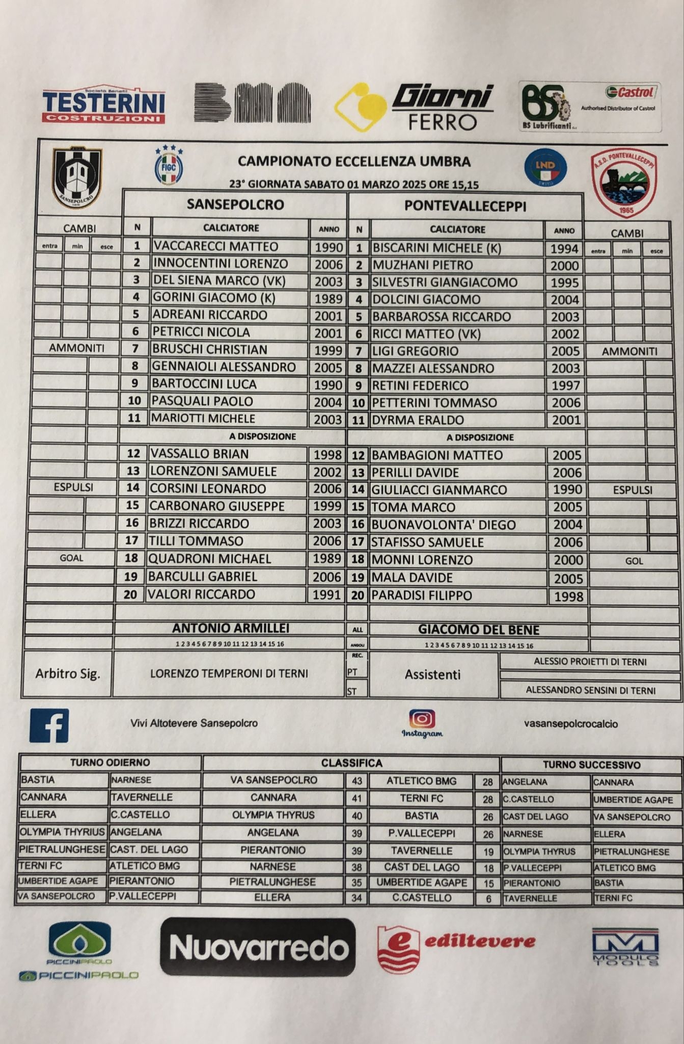 VA SANSEPOLCRO - P.V.CEPPI (sabato ore 15,15): 2-1