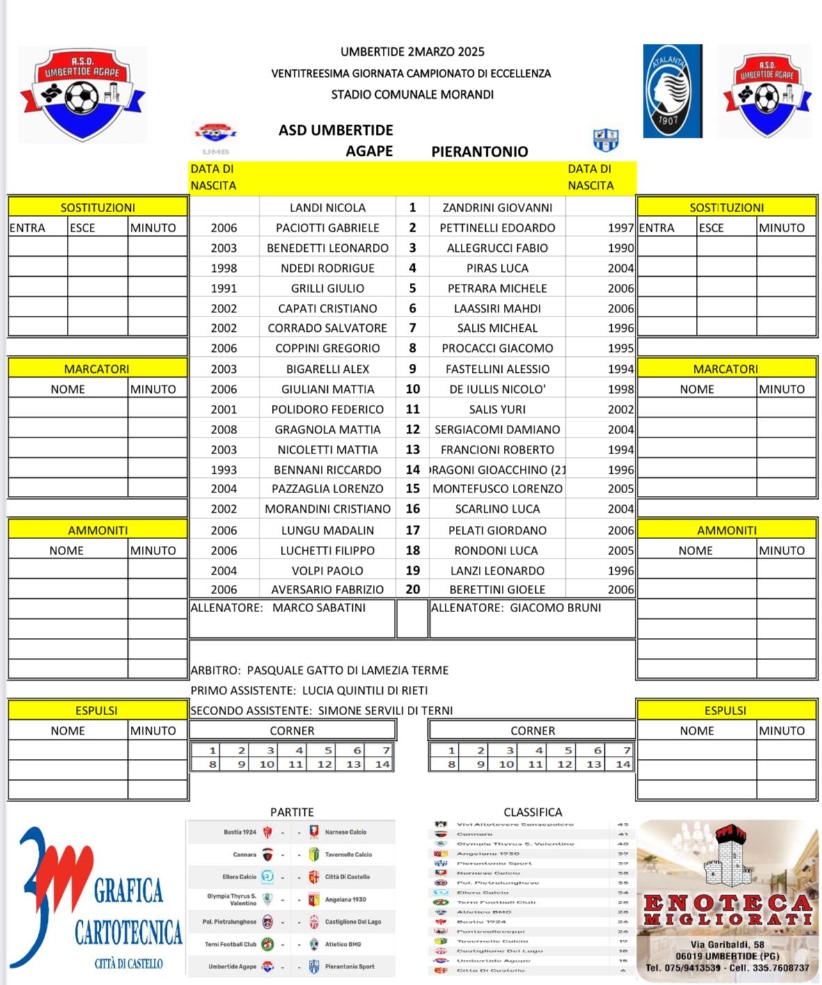 UMBERTIDE AGAPE - PIERANTONIO: 0-3