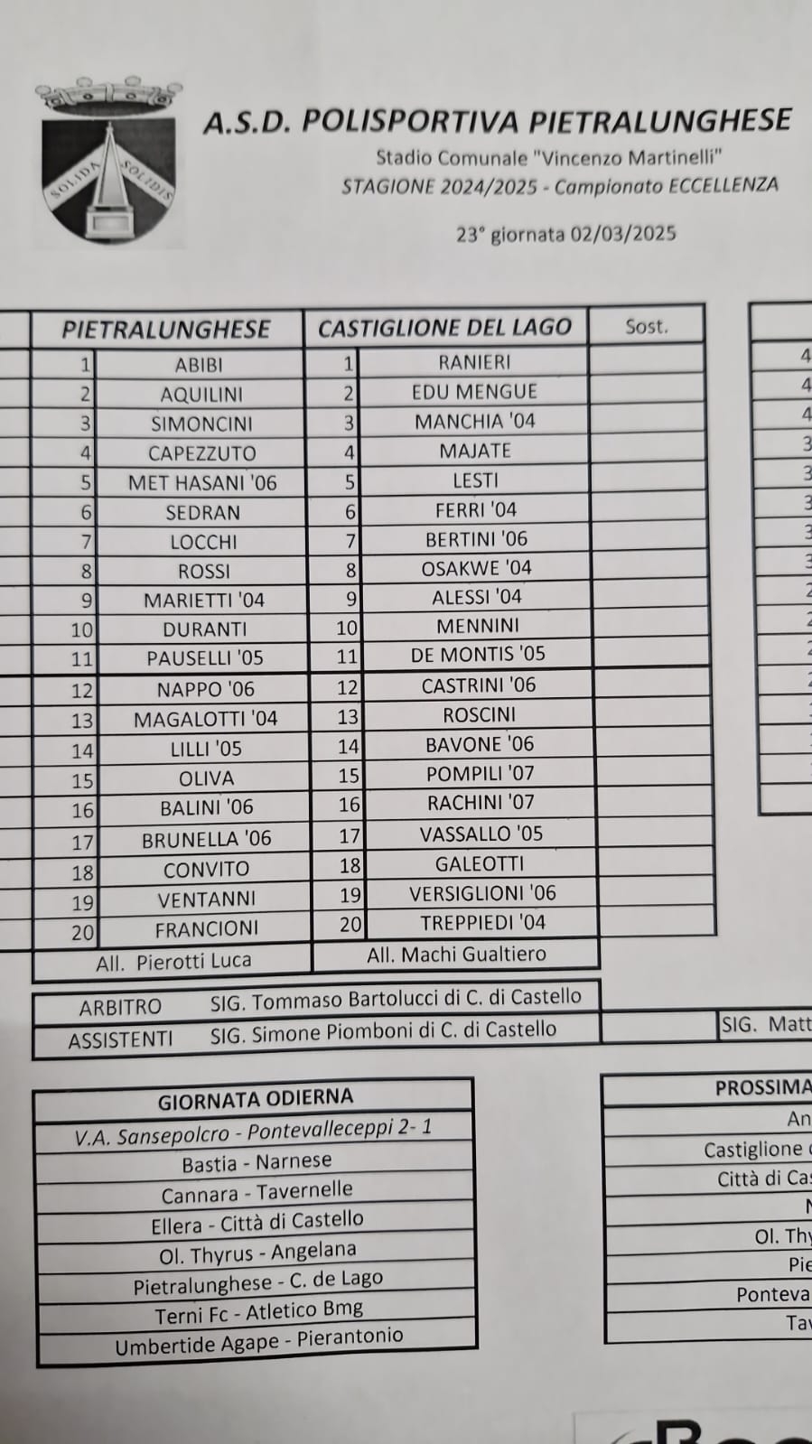 PIETRALUNGHESE - CAST. LAGO: 1-0