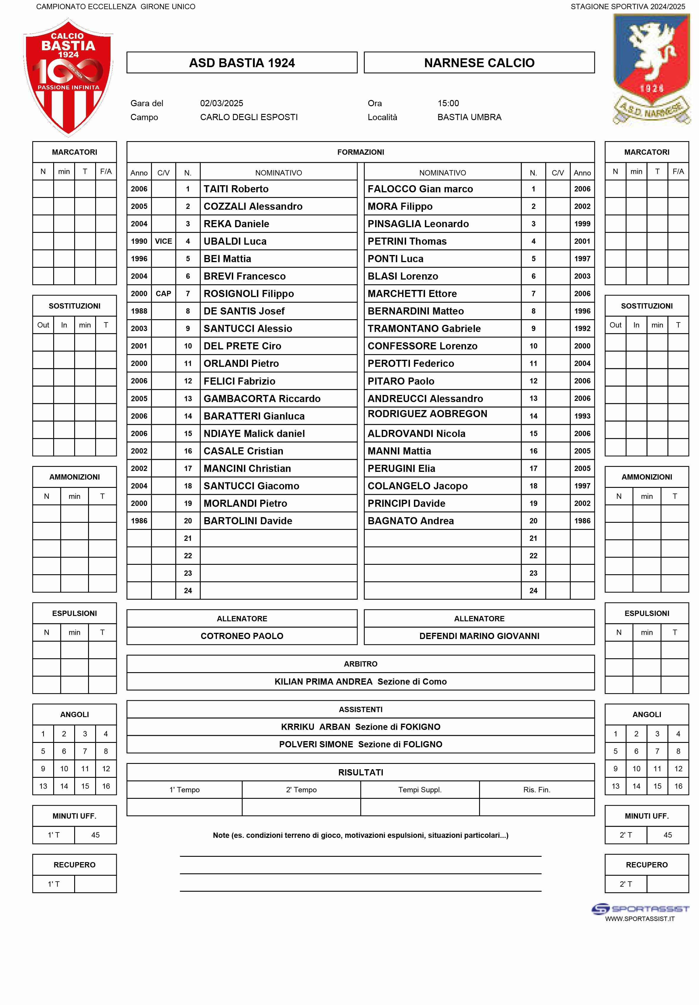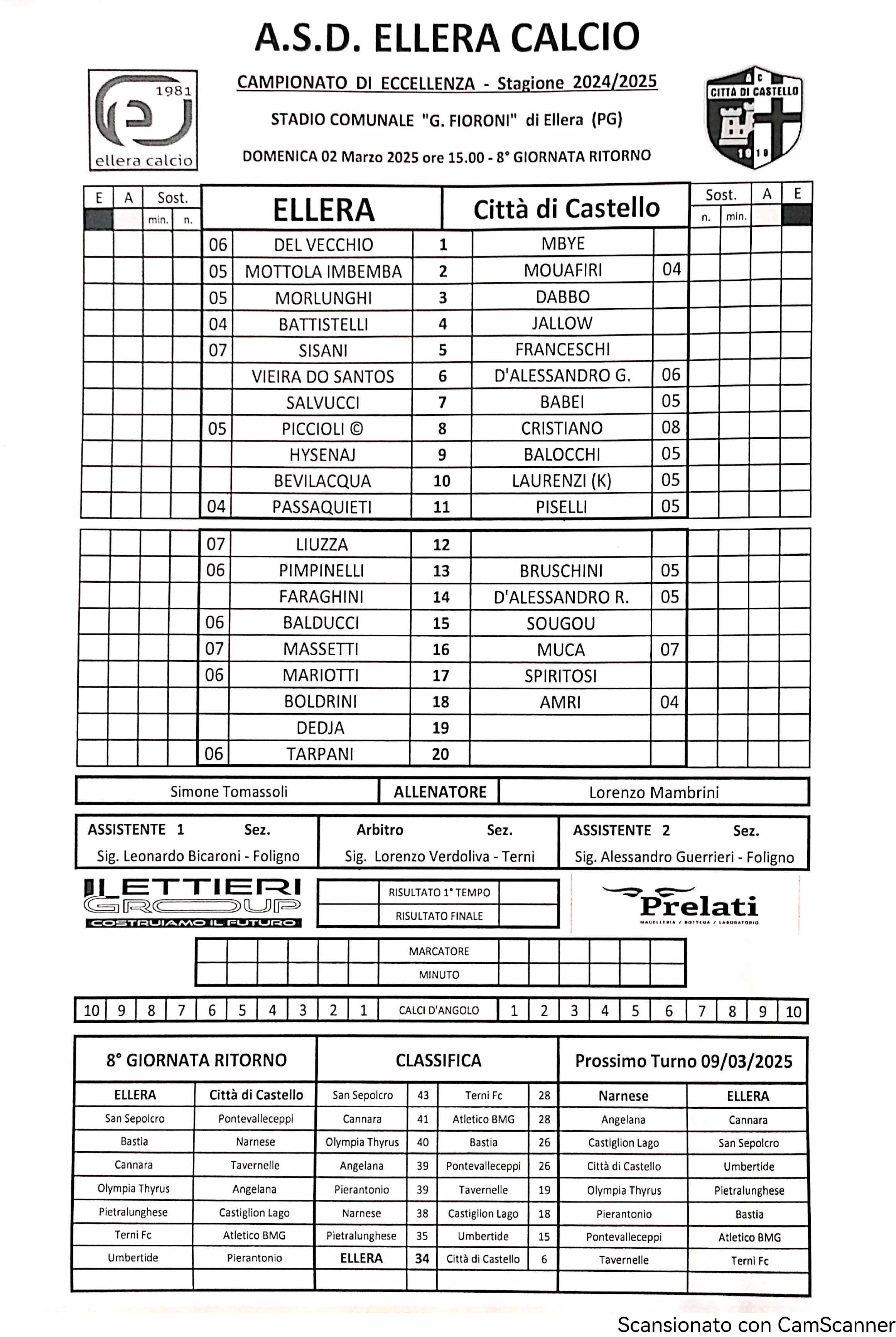 ECCELLENZA - Tutti i gol e le liste gara della 23a giornata