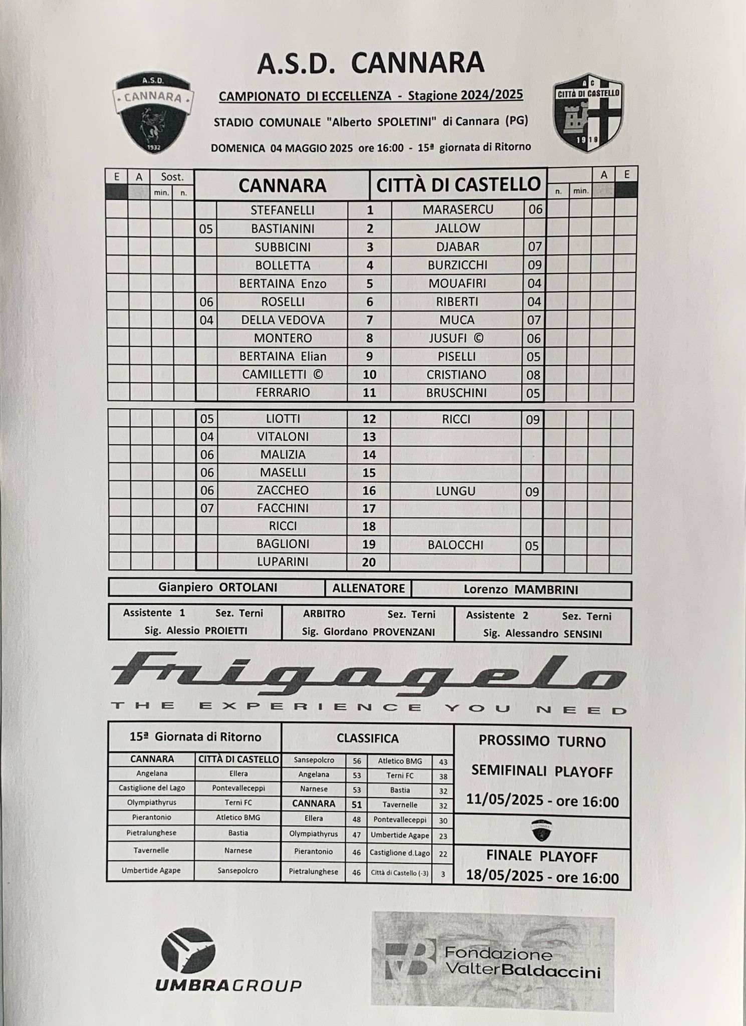 CANNARA - C. CASTELLO: 12-0