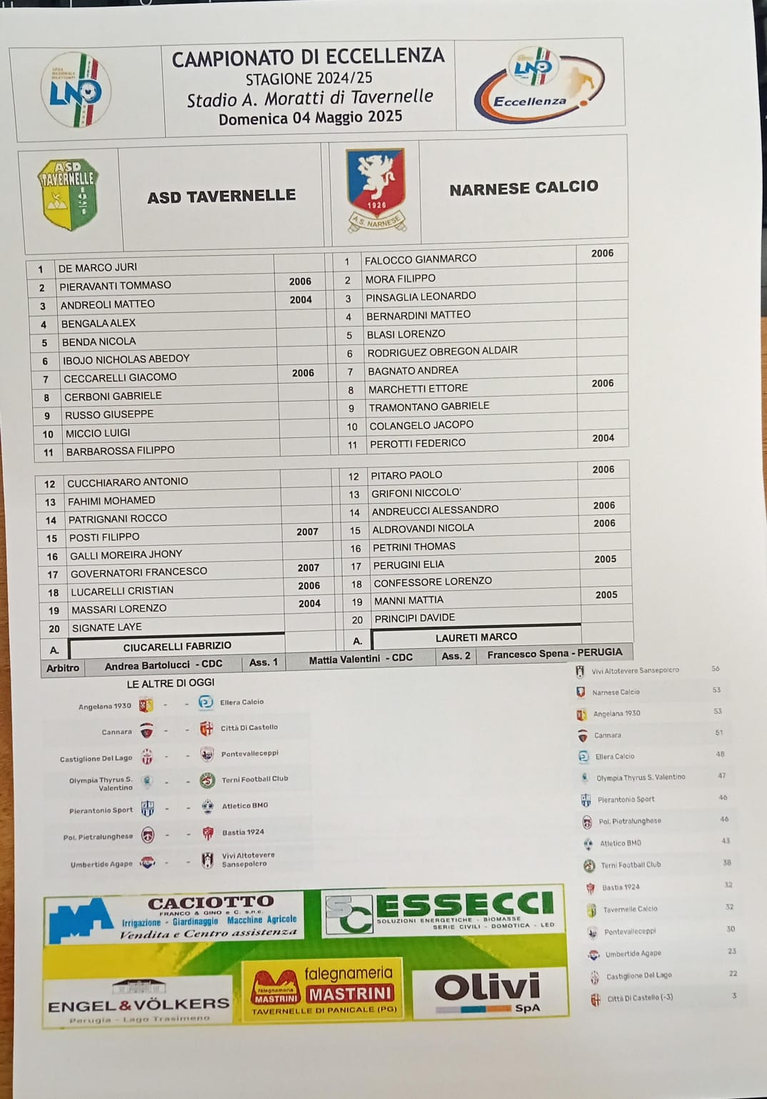 TAVERNELLE - NARNESE: 1-1
