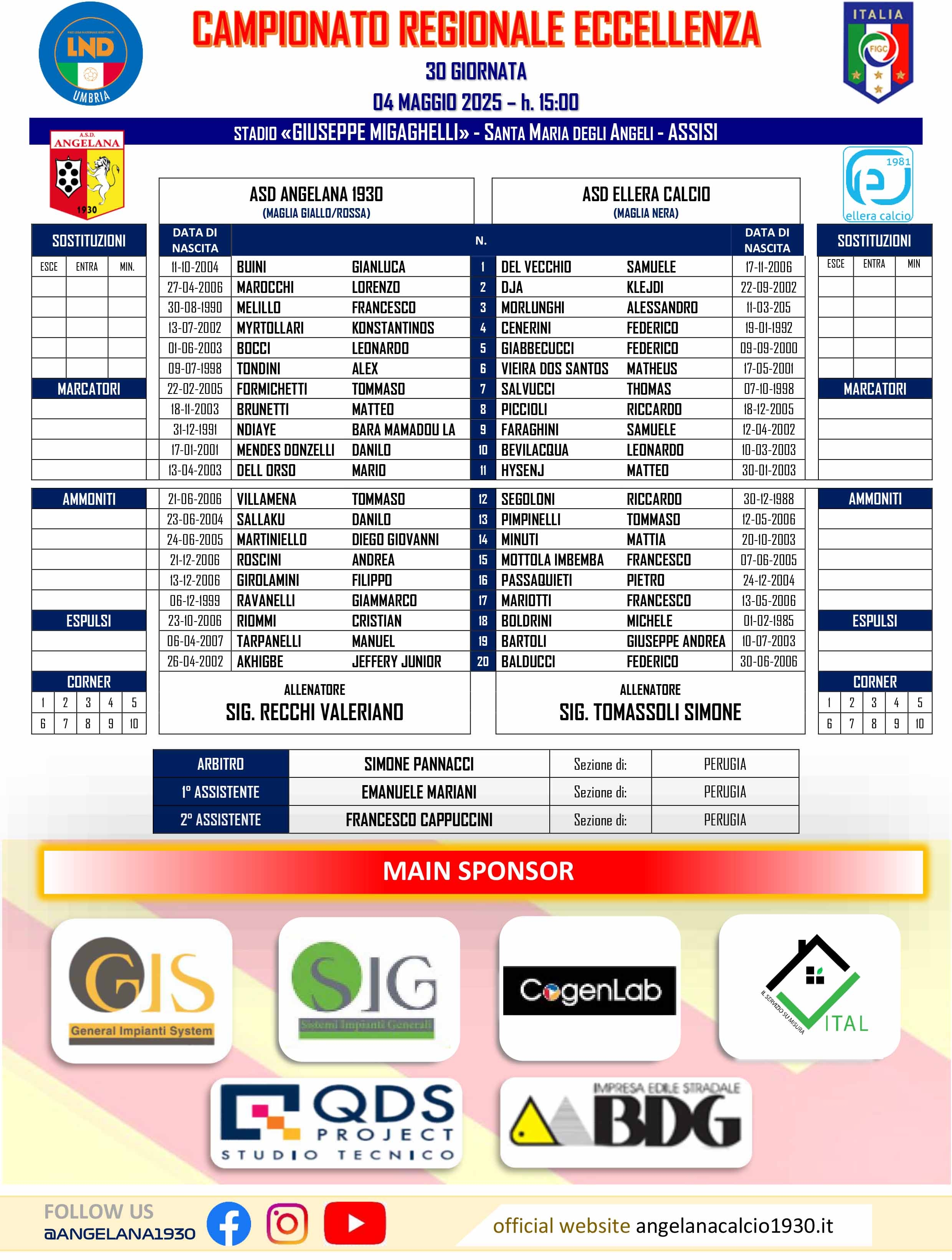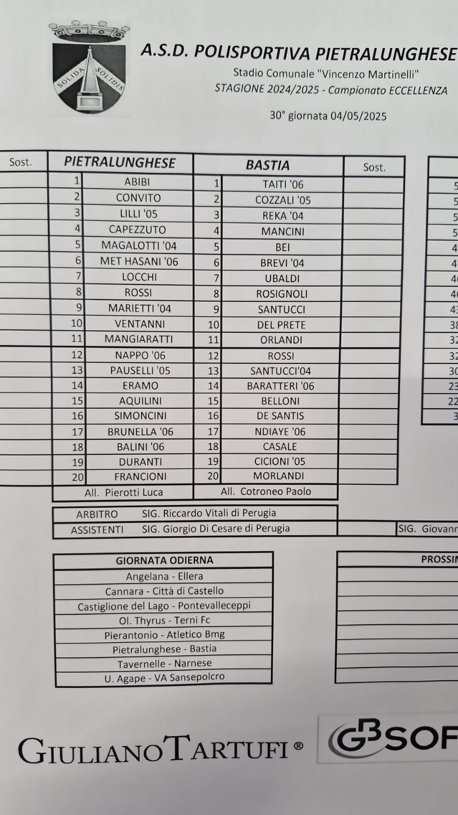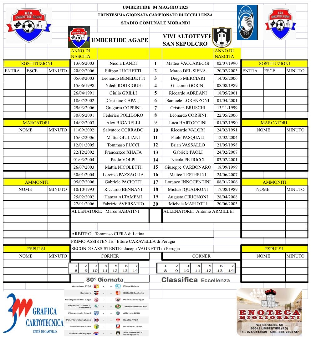 ECCELLENZA - Tutti i gol e le liste gara della 30a giornata