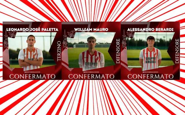"La società è lieta di annunciare la conferma, per la stagione sportiva 2025/2026, di tre importanti pedine della rosa: Leonardo Josè Paletta, William Mauro e Alessandro Berardi.